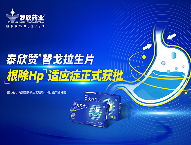 羅欣藥業(yè)創(chuàng)新藥替戈拉生片(商品名:泰欣贊?)新適應癥“與適當?shù)目股芈?lián)用以根除幽門螺桿菌”獲批上市